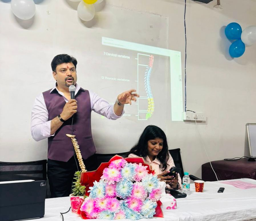 ने मुख्य वक्ता एवं प्रशिक्षक के रूप में सहभागिता की। दोनों विशेषज्ञों ने स्पाइन के महत्व, उसकी जैव-यांत्रिक संरचना, रोज़मर्रा की गतिविधियों पर पड़ने वाले प्रभाव, क्लीनिकल संकेतों की पहचान, एर्गोनॉमिक सुधार, थेरेपी तकनीकों और आधुनिक पुनर्वास के वैज्ञानिक सिद्धांतों पर विस्तृत चर्चा की।